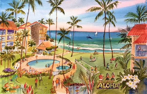 Watch the whales and sea turtles right in front of the Papakea Resort! This resort offers fabulous sunsets and views of the islands of Molokai and Lanai. Let the waves lull you to sleep. This resort is a peaceful Hawaiian Style low rise resort on 13 acres just a short walking distance to 3 mile long North Kaanapali Beach. The lushly landscaped grounds are immaculately maintained and adorned with red ginger and red palms. At dusk every evening the magical twinkling tiki lights are lit and reflect on the Koi ponds through-out the property. This ocean front condominium resort’s amenities include two ocean side swimming pools, two tennis courts, putting greens, 24-hour front desk service, poolside barbecues, two hot tubs and shuffle board court. The resort is within walking distance to a shopping center, local farmers market, bars, coffee shops, fresh fish market, restaurants and sandy beaches.